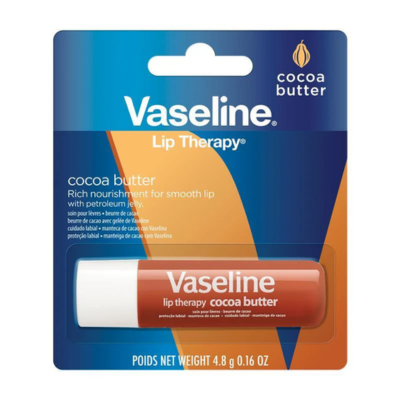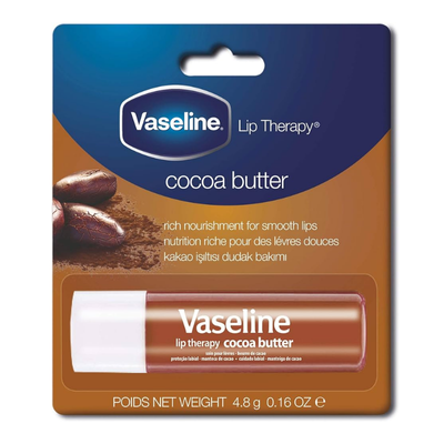 xSoothe and nourish dry lips with Vaseline Lip Therapy Cocoa Butter. This convenient, 4.8 gram lip balm stick is packed with the goodness of cocoa butter and Vaseline Jelly.